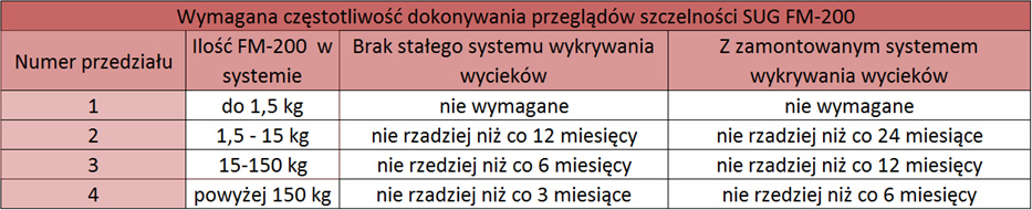 Rysunek 1. Wymagana częstotliwość dokonywania przeglądów szczelności SUG z FM-200, źródło: blog-ppoz.pl